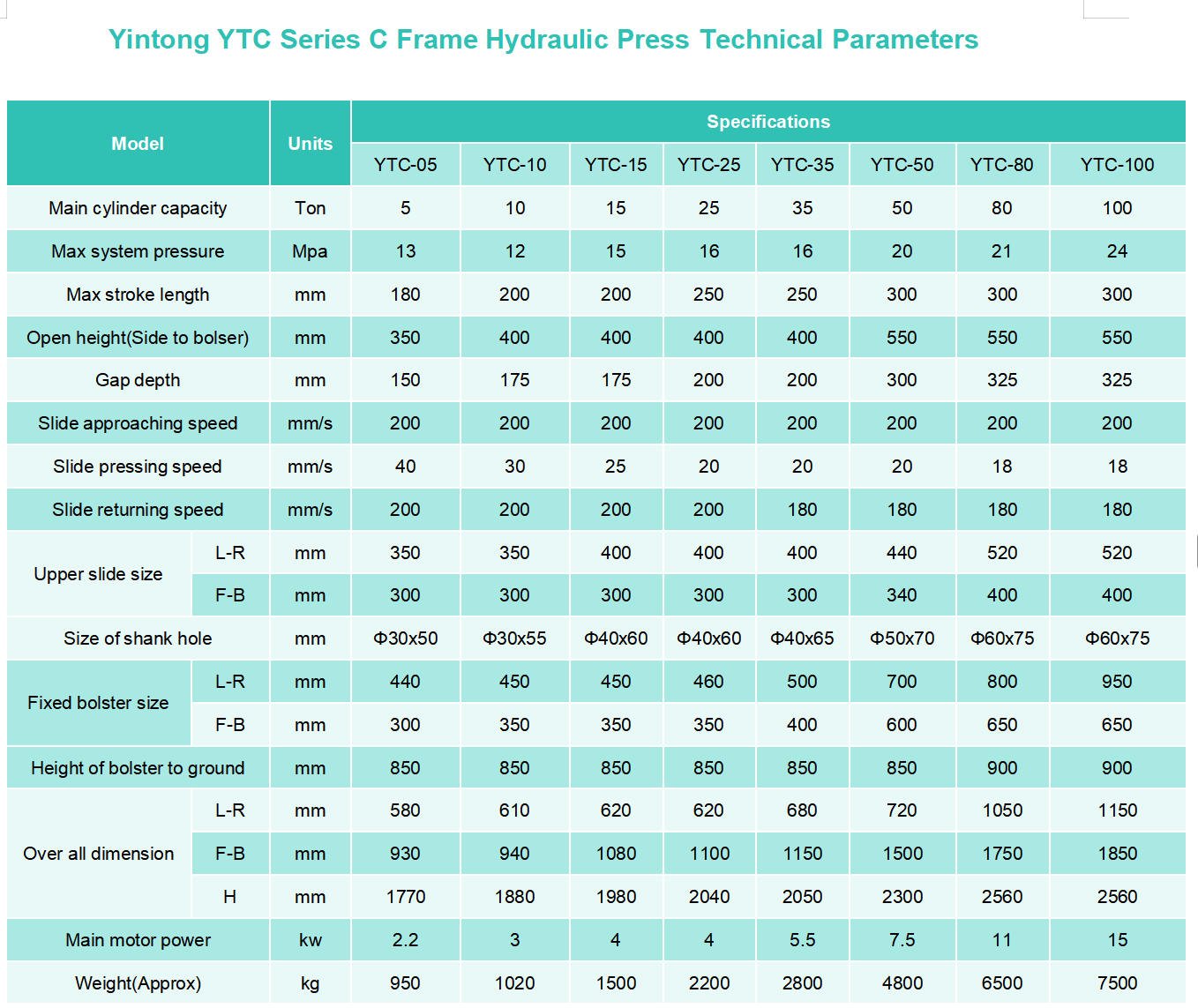 YTC Series 50 Ton C Frame Press
